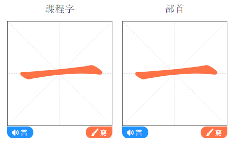 ①點擊藍色小圖標,播放普通話讀音;點擊橙色小圖標,播放筆順動畫。