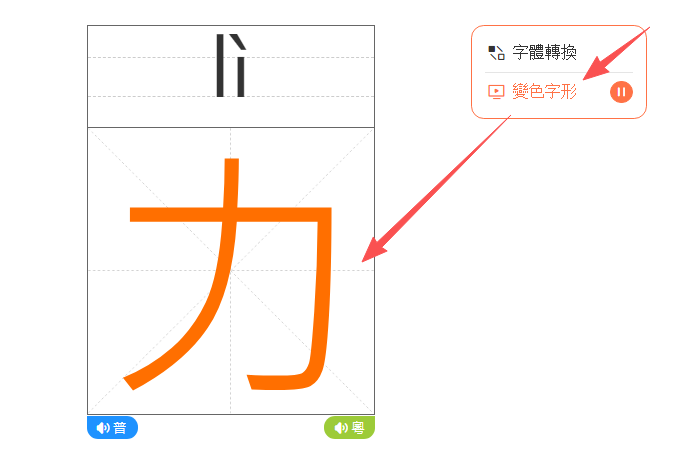 點擊「變色字形」鍵,課程字會自動變換顏色,有助於學生識別記憶字形。