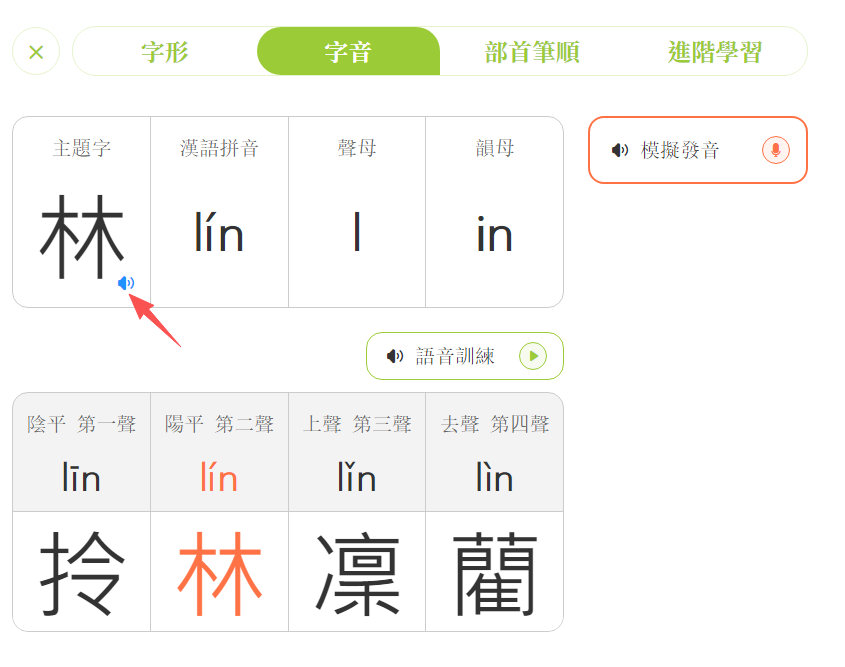 點擊「字音」,進入學習頁面。