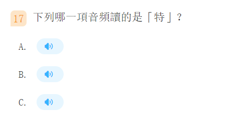 提示:當題目為音頻題時,點擊音頻鍵,播放語音,聽後選擇正確的答案。