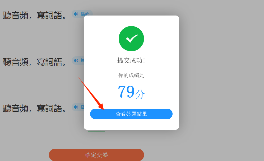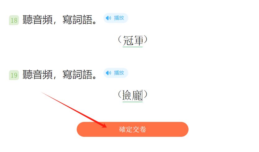 完成全部練習才可以提交答卷,點擊「確定交卷」,提交練習答案。