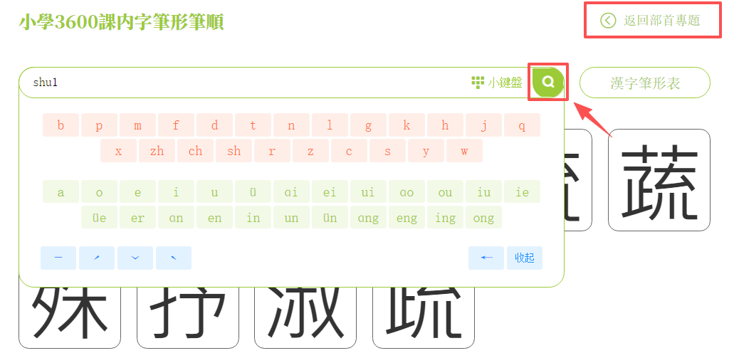 (3)點擊「返回部首專題」鍵,即可返回部首專題頁面。