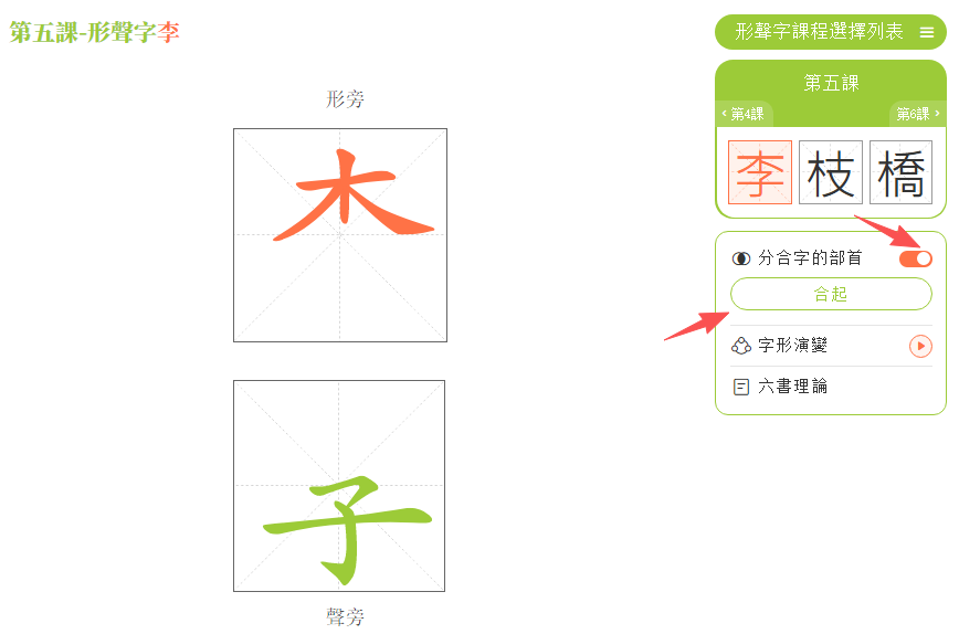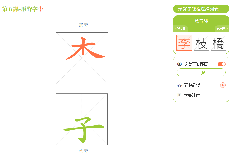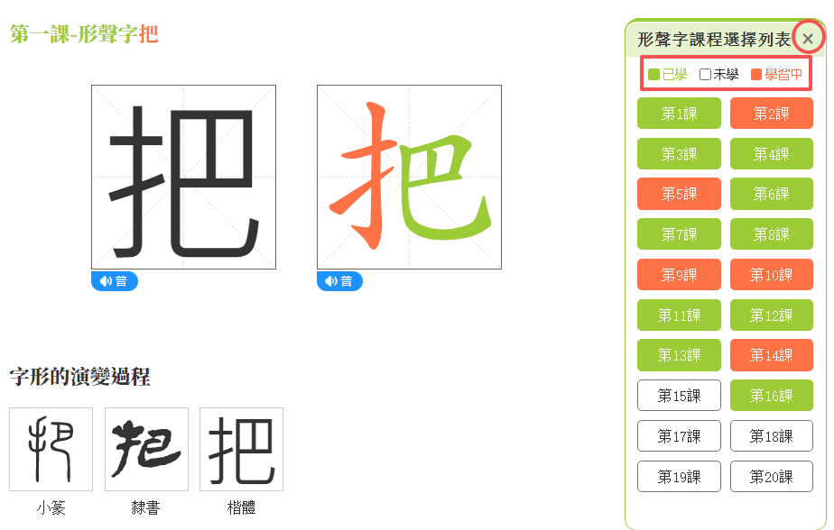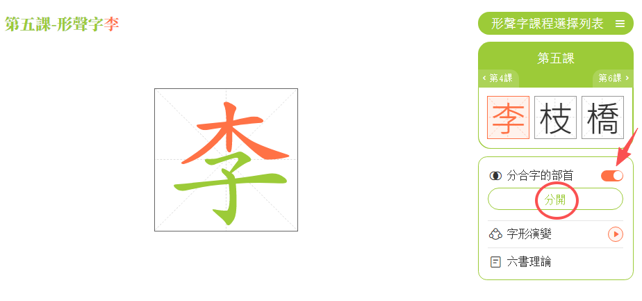 (1)點擊「形聲字課程選擇列表」。