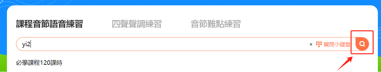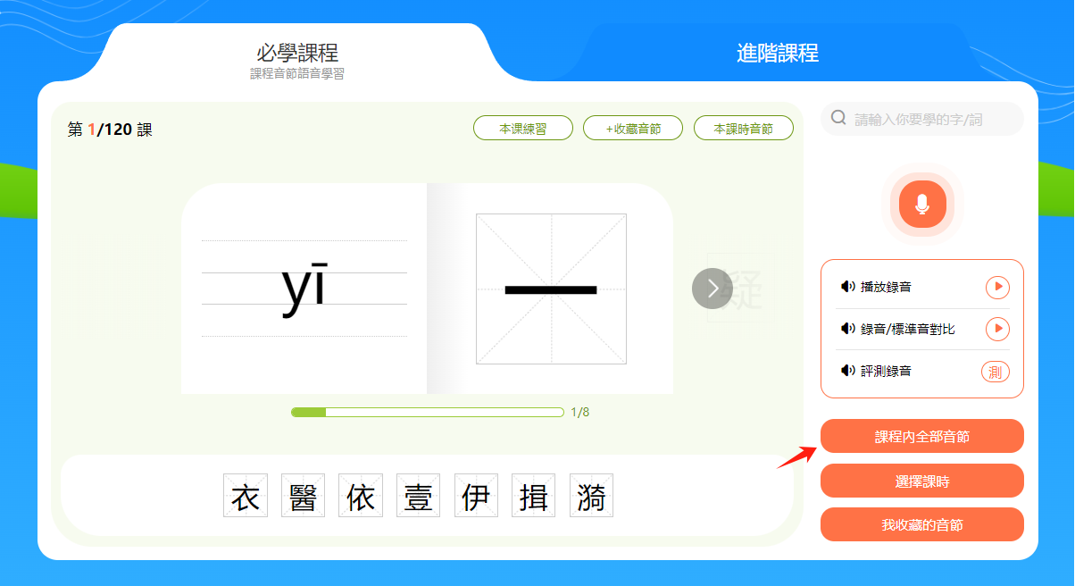 點擊「課程內全部音節」鍵可搜索或查看本課程涵蓋的音節。