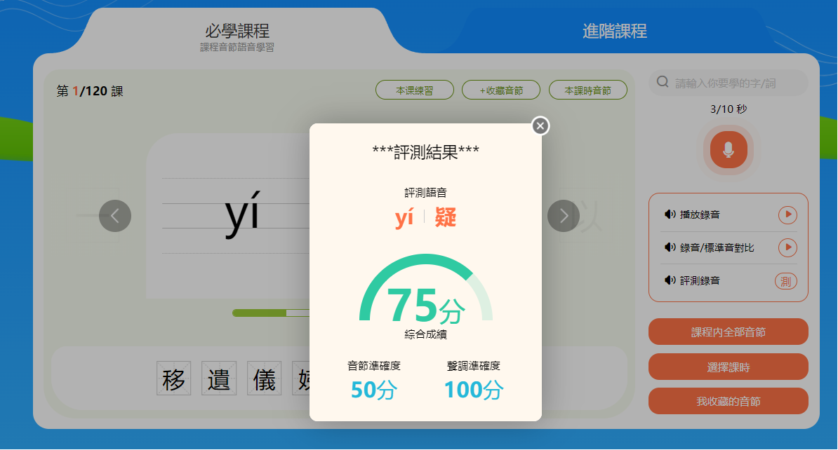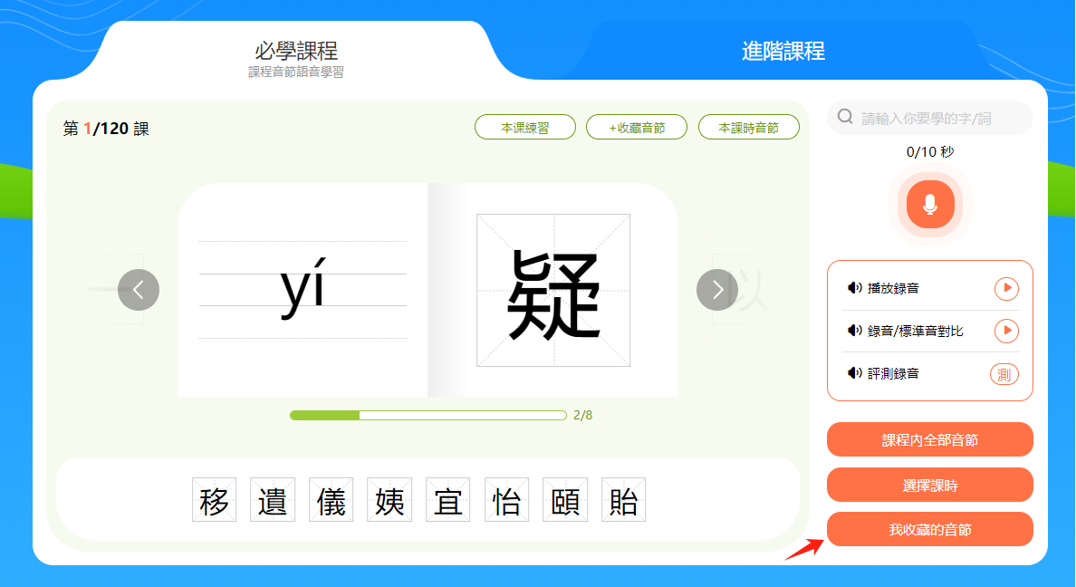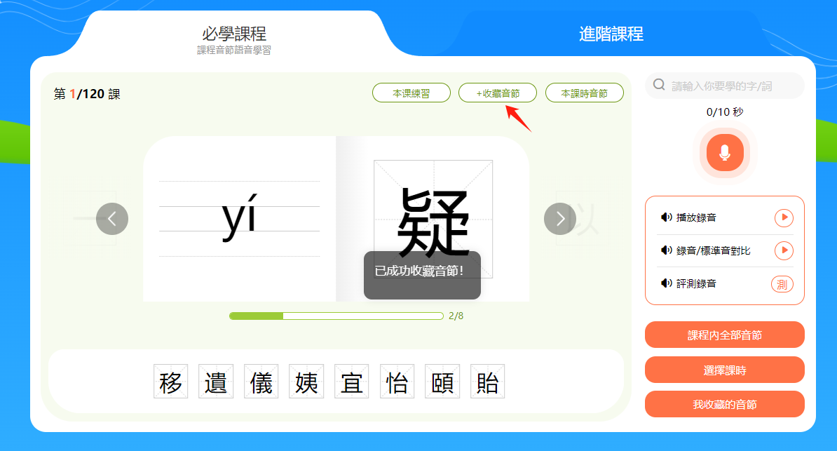 學生可將較難的音節或容易出錯的音節收藏起來,以便後期進行複習。