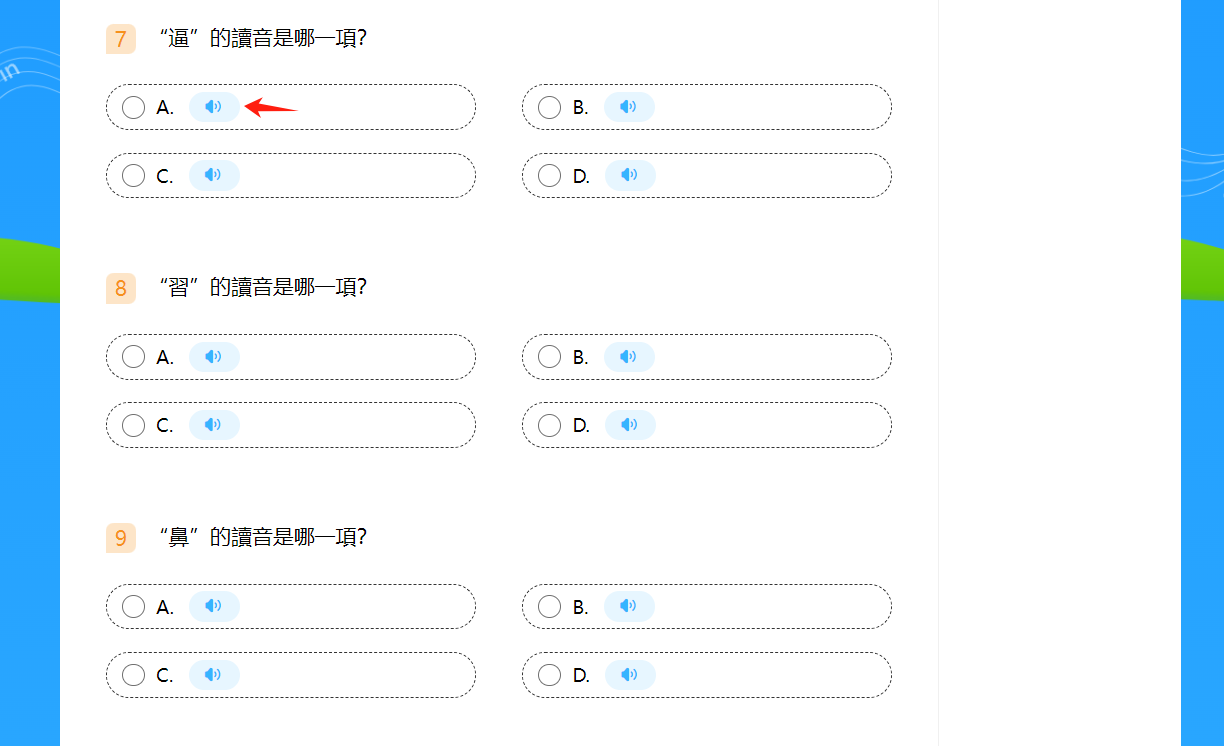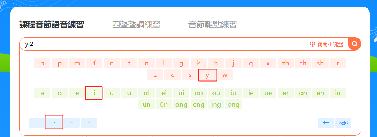 小提示:若想停止播放則再次點擊該音節/例字。