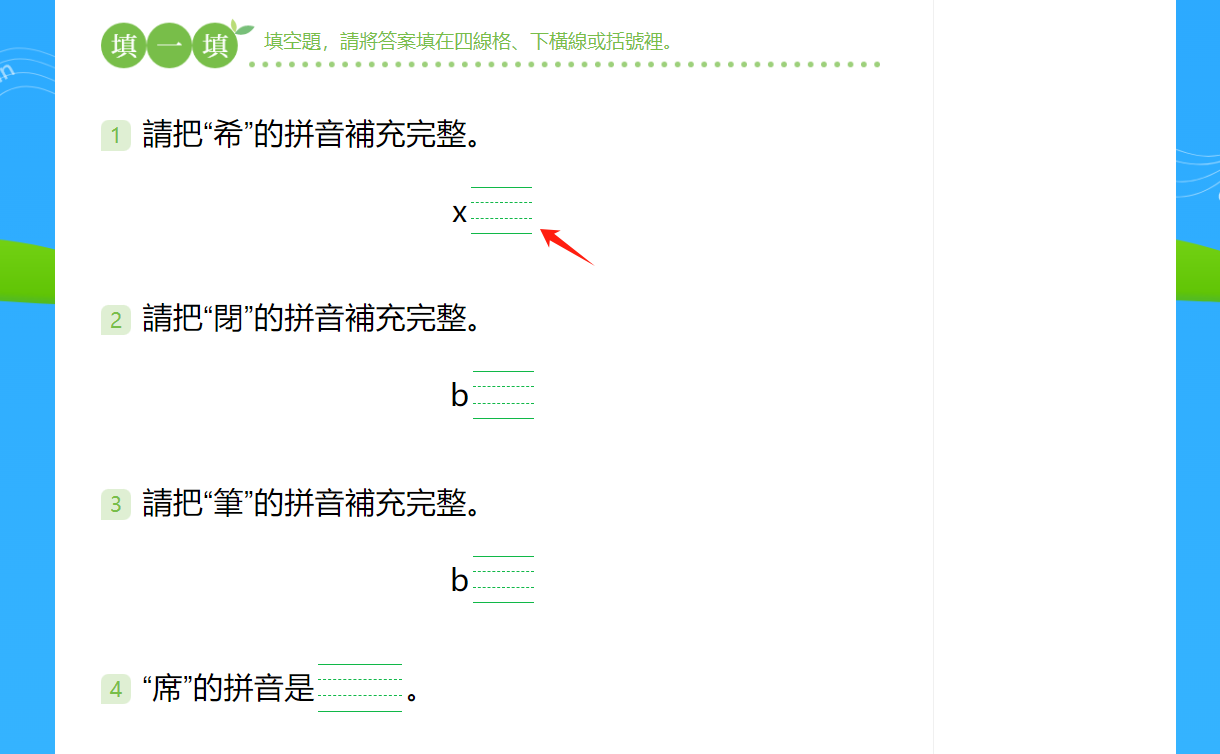 第一步:點擊需要填入答案的四線格或橫線。